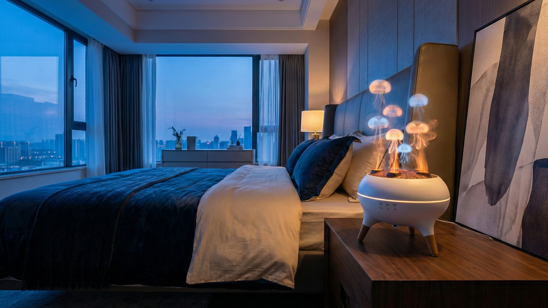 - Pełna kontrola: Zmień tryb pracy (Jellyfish / Direct Spray) lub kolor podświetlenia jednym kliknięciem pilota, nie wstając z kanapy.